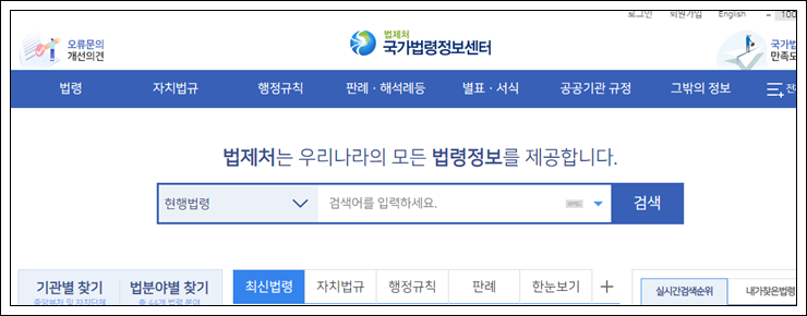 1. 먼저 검색 포털 등 국가법령정보센터로 입력하고 검색을 진행합니다. 검색결과에 나오는 홈페이지로 이동을 합니다.