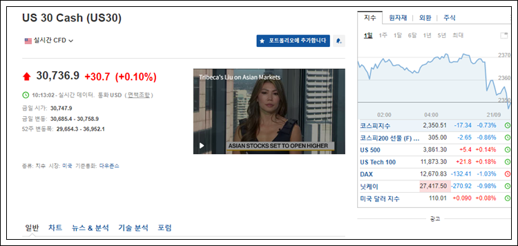 2. 뉴욕선물 지수 인베스팅 이용방법