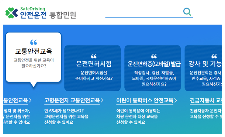 1. 운전면허증 재발급 사이트에 방문합니다. 안전운전 통합민원 사이트로 이동을 합니다.