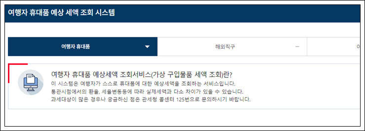 면세범위 초과물품 예상세액 조회